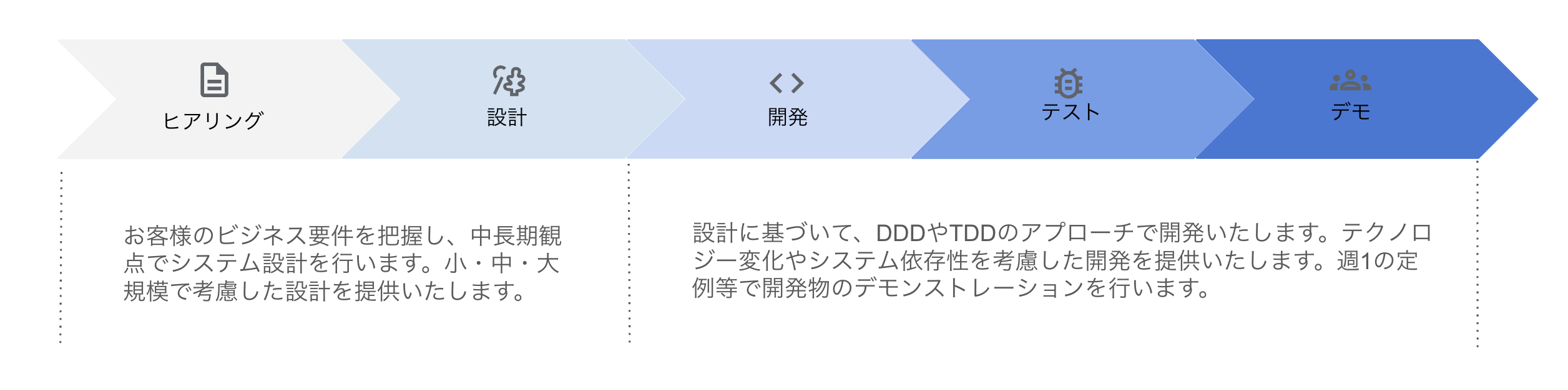 弊社は、小規模~大規模なソフトウェア開発案件まで対応可能です。 お客様の要望を実現するために、ヒアリングをさせていただき技術力で解決いたします。 戦略策定から設計・開発・運用まで、幅広い領域をサポートします。